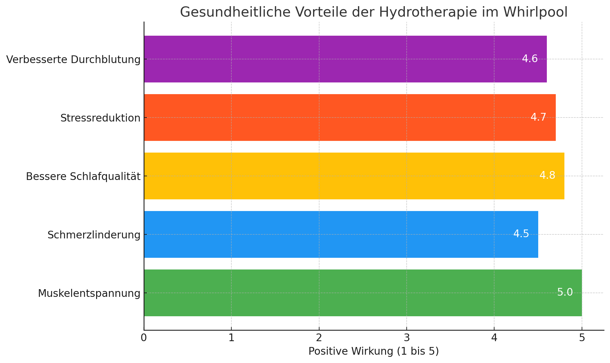 Hydrotherapie kann zu einer deutlichen Verbesserung Ihrer Gesundheit und Lebensqualität beitragen. Studien zeigen, dass regelmäßige Nutzung eines Whirlpools Muskelverspannungen lindert, die Durchblutung verbessert und allgemeine Entspannung fördert.